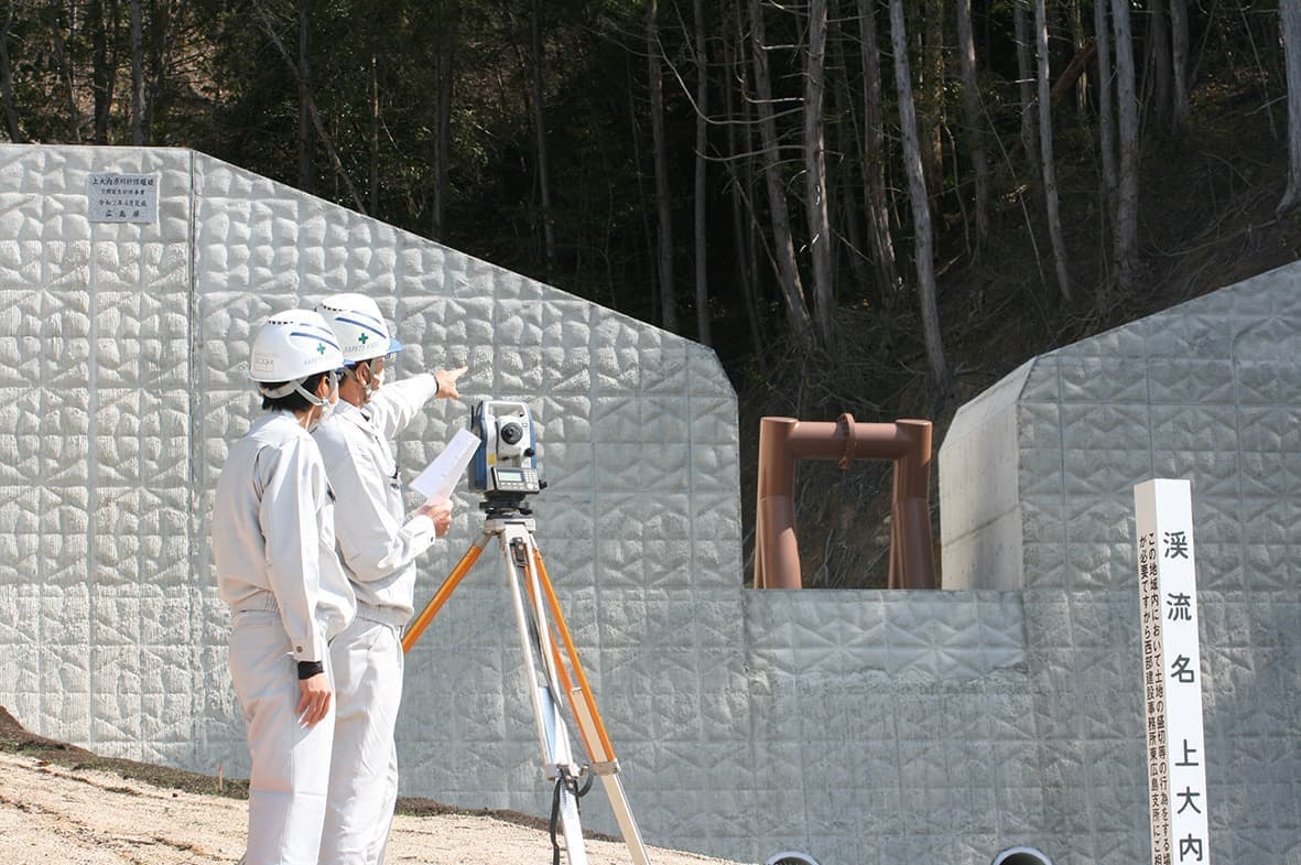 災害現場での工事ということで、二次災害を起こさないことを第一に考えて施工しました。また、足場が悪く障害物の撤去や測量がとても大変でした。